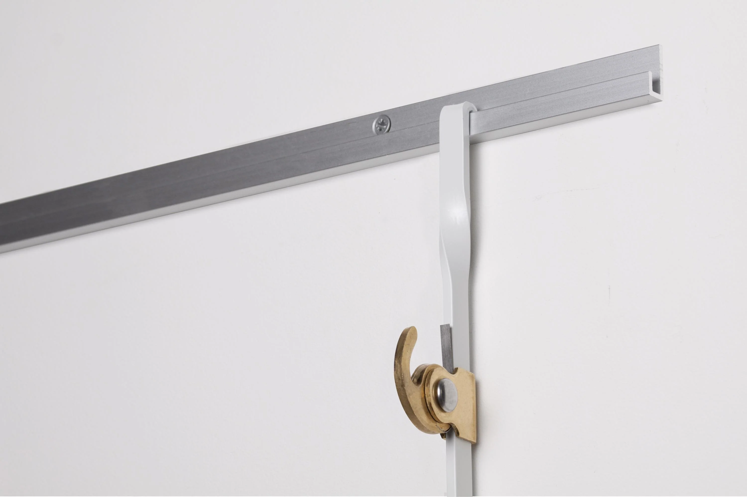 The STAS j-rail max has been designed for heavy paintings. Simple and massively strong. This explains why this system is extensively used in galleries and museums all over the world. The STAS j-rail max system is used mainly for professional applications. The highly effective, thick-walled aluminium profile is capable of supporting loads of up to no less than 220 lbs (100 kg) per linear meter. An additional anti-theft system is available. Dimensions: 9 x 20mm